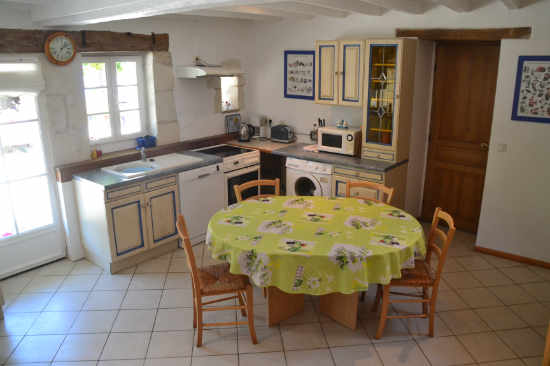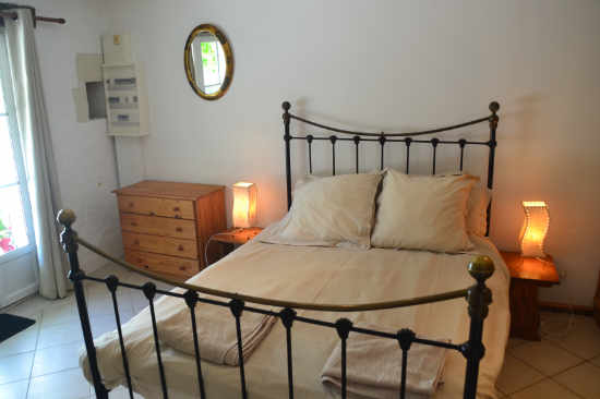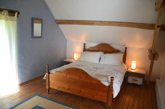 With double doors out onto the pretty main courtyard, the living/dining room has a table, chairs and comfortable seating area with a sofa and two armchairs, plus a flat screen TV for watching dvd’s, a USB music tower system and free WIFI. The adjoining open plan kitchen has an electric cooker, microwave, dishwasher, fridge/freezer and washing machine plus all the cups, glasses, pans, cutlery etc needed for a group of six people. The ground floor is completed by a double bedroom with its own private double doors also leading onto the courtyard.