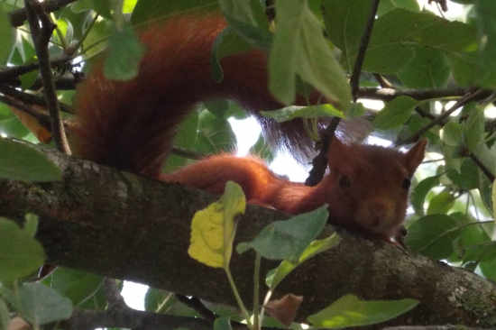 Red squirrels, an unusual treat, are native here – there are no aggressive greys – and love the nearby hazelnut and walnut trees. There are often roe deer in the wood, where we have also seen wild boar and pine martens.