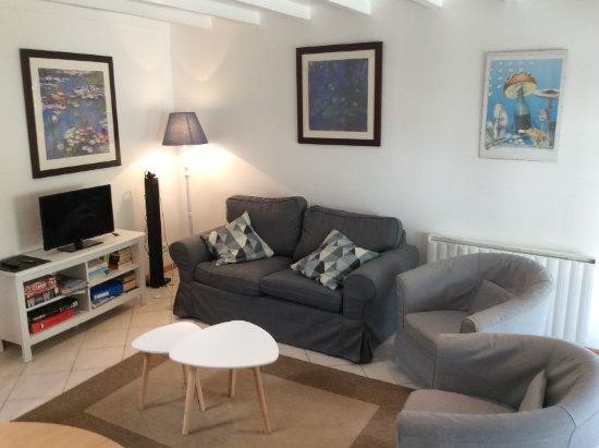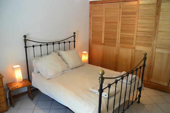 With double doors out onto the pretty main courtyard, the living/dining room has a table, chairs and comfortable seating area with a sofa and two armchairs, plus a flat screen TV for watching dvd’s, a USB music tower system and free WIFI. The adjoining open plan kitchen has an electric cooker, microwave, dishwasher, fridge/freezer and washing machine plus all the cups, glasses, pans, cutlery etc needed for a group of six people. The ground floor is completed by a double bedroom with its own private double doors also leading onto the courtyard.