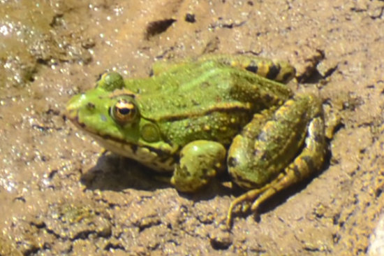 Near the lake or millpond you are likely to see fluorescent green lizards, huge green and gold frogs who make the loudest chorus noise in early summer, as well as fabulous coloured dragonflies or couleuvre snakes (harmless) which often swim across the lake.
